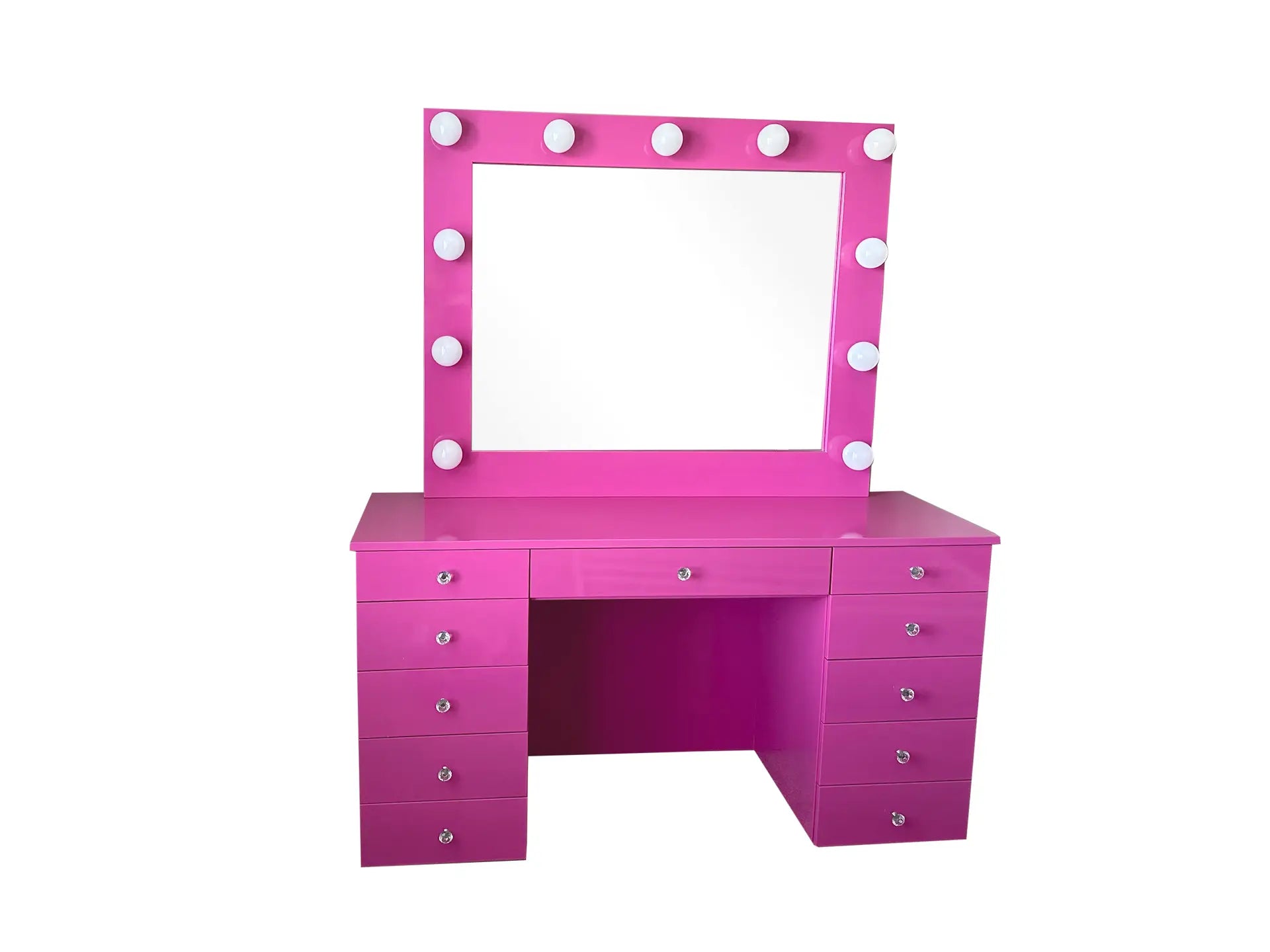 Handcrafted from high-quality wood 🪵, this Barbie Pink Vanity combines elegance and functionality ✨. It features a wood top 🌿, 11 luminous light bulbs 💡, 11 soft-close drawers 🗄️, and a convenient plug-in phone charging station 📱. Keep your space organized, illuminated, and ready for anything with this gorgeous addition to your room 🌸.