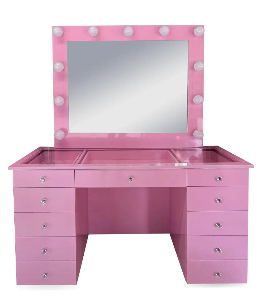✨ The Blooming Pink Vanity is the perfect blend of style and functionality for your beauty routine! ✨ Featuring 11 bright lights 💡 for optimal illumination, a power outlet 🔌 and USB port 📱 for easy device charging, Bluetooth 🎵 for music while you get ready, soft-close drawers 🗄️ for quiet organization, and a clear glass top ✨ for a modern touch. Transform your makeup space into a luxurious and practical haven 💖🏡
