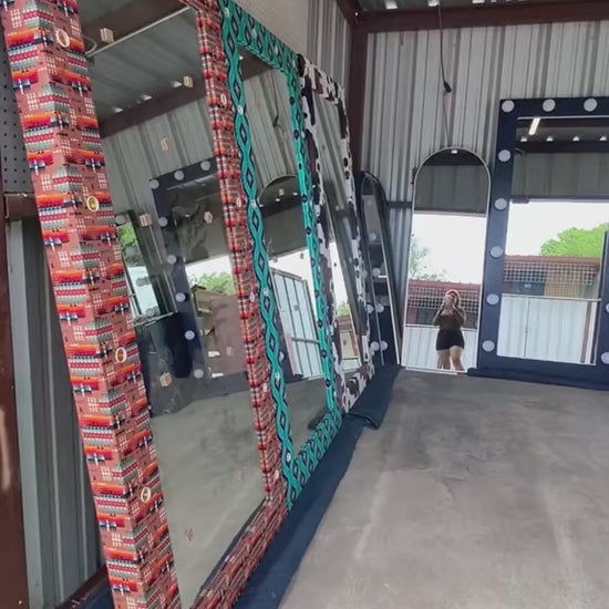 Elevate your space with our hand-crafted in the navy Body Mirror. Featuring 14 Dimmable lights and a unique design, this mirror not only brightens up any room but adds a touch of Hollywood sleek design its the perfect addition to any rustic-themed decor.